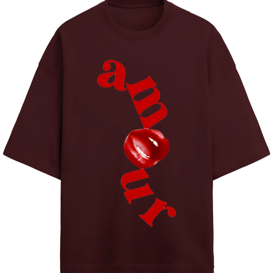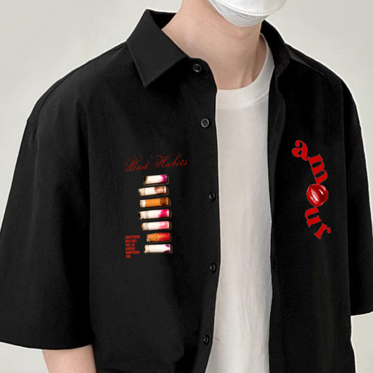 'Amour' front graphic pocket prints Oversized Bowling Shirt