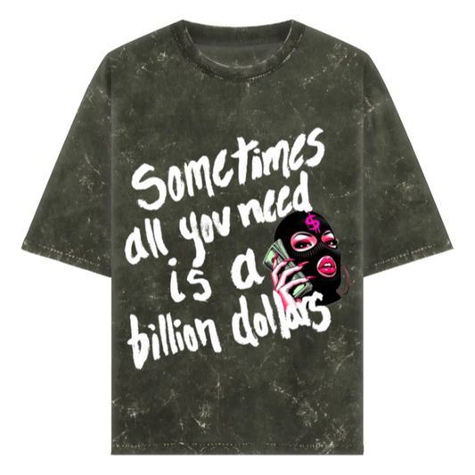 'All you need is a Billion Dollars' Oversized Unisex Acid Wash T-Shirt