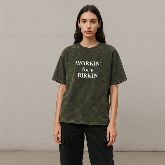 '1Workin' for a Birkin' Unisex Acid Washed Oversized Tee