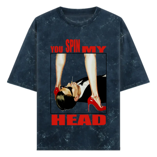 'You spin my Head' graphic Oversized Unisex Acid Wash T-Shirt