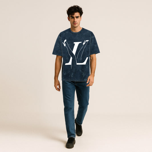 'LV' graphic Oversized Acid Wash T-Shirt
