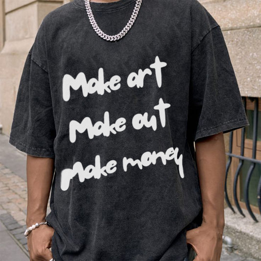 'Make Art Make Out Make Money' Unisex Oversized Acid Wash T-Shirt