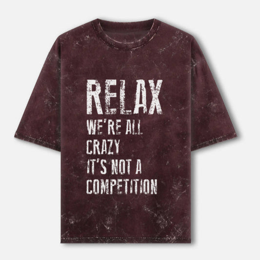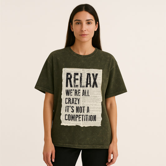 'Relax we're all crazy' Unisex Acid Washed Oversized Tee