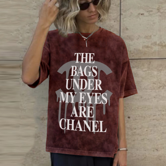 'The bags under my eyes are Chanel' Oversized Acid Wash T-Shirt