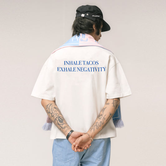 'Inhale Tacos exhale negativity' Unisex Oversized Bowling Shirt