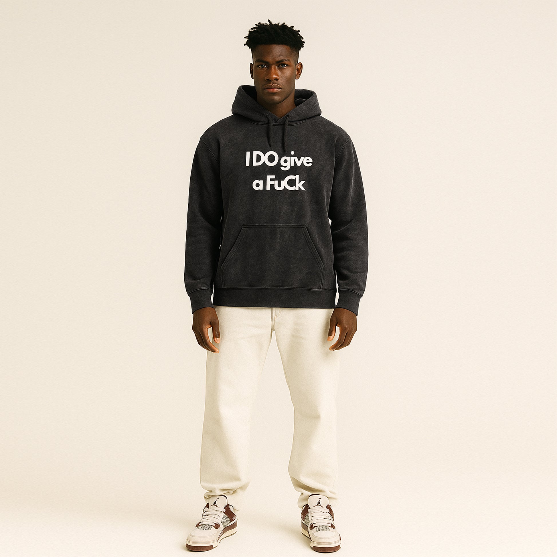 'I Do give a Fuck' regular fit Acid wash Hoodie