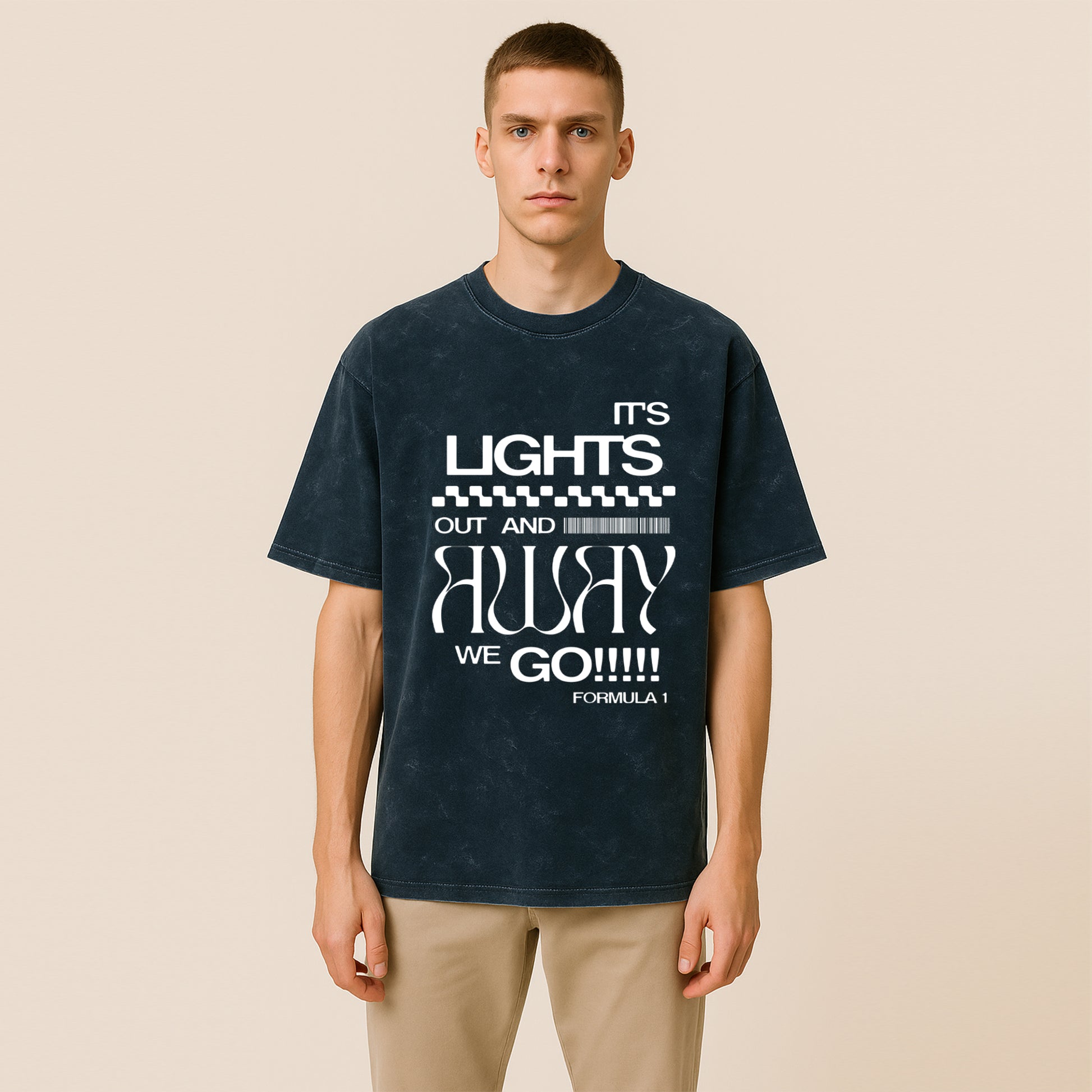'Lights Out Formula 1' Unisex Acid Washed Oversized Tee